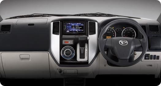Daihatsu Luxio memiliki tampilan interior yang lebih mewah di kelasnya. Dashboard depan hadir dengan kombinasi warna abu gelap dan abu terang yang elegan dan mewah.