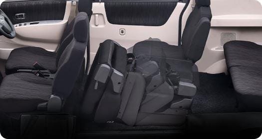 Anda juga dapat melipat kursi baris kedua bagian kiri hanya dengan satu sentuhan, memudahkan penumpang baris ketiga masuk dengan lebih mudah dan praktis. Selain cup holder pada bantalan tangan baris kedua, Daihatsu Luxio juga menyediakan tempat penyimpanan barang dan cup holder tambahan yang cukup banyak pada baris pertama, baris kedua, hingga baris ketiga penumpang.